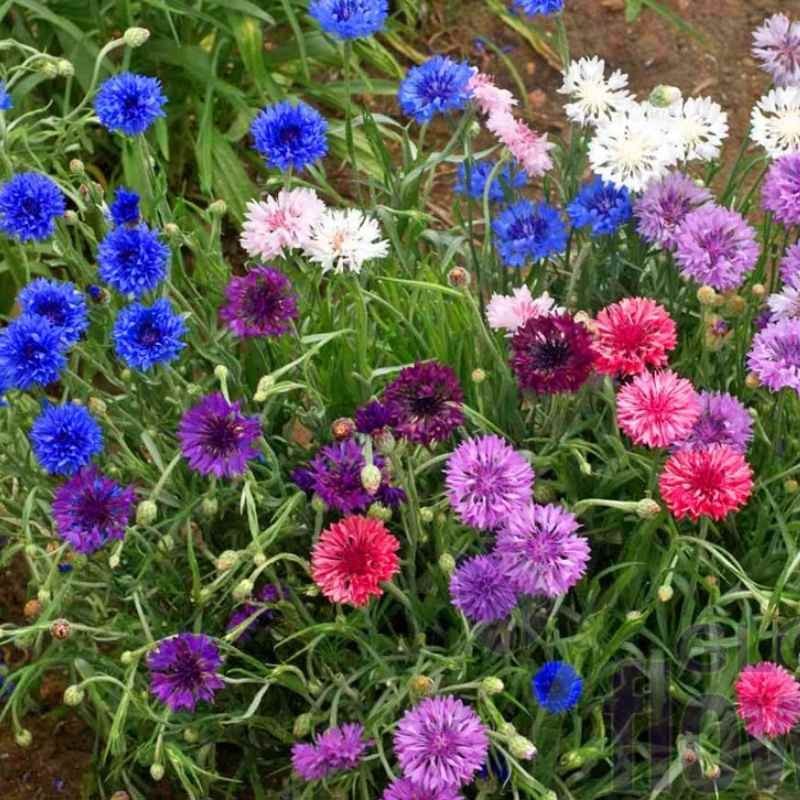 Opakowanie zawiera nasiona chabra o kwiatach w różnych kolorach.