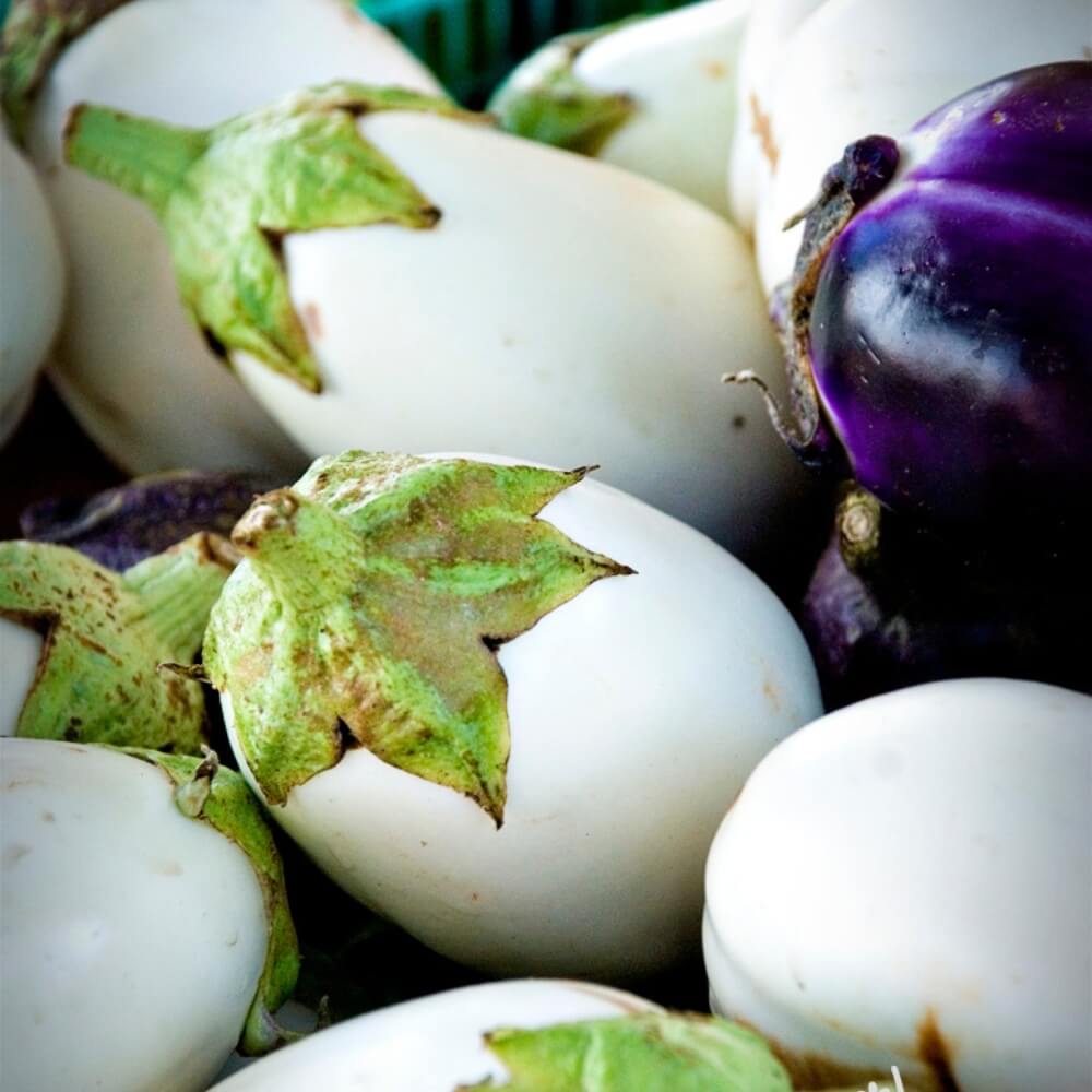 • Bakłażan White Egg oryginalna odmiana oberżyny o białych, maczugowatych owocach. Śnieżnobiały miąższ ma specyficzny, wyszukany smak, zawiera dużo soli mineralnych oraz potasu, fosforu, wapnia, żelaza i mikroelementów. Owoce zbiera się niedojrzałe (są smaczniejsze) i spożywa panierowane, faszerowane-zapiekane w piekarniku lub na grillu, z dodatkiem pomidorów, cebuli, przyprawione ziołami i czosnkiem.