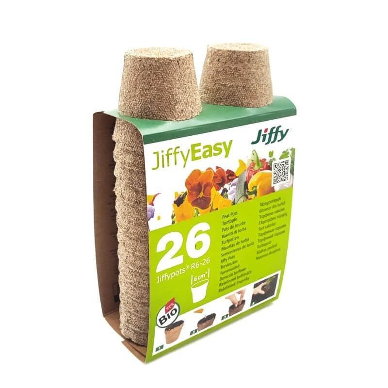 Jiffy - Biodegradowalne Doniczki Torfowe okrągłe - 26 szt. średnica ⌀ 6 cm