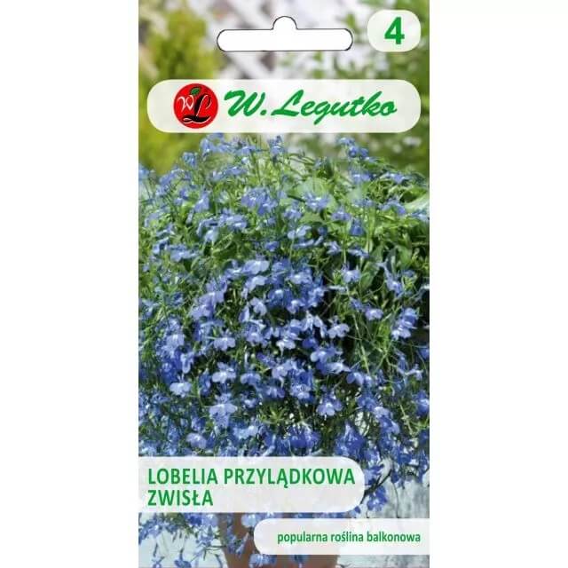 Opakowanie zawiera nasiona Stroiczki o kwiatach w kolorze niebieskim. Lobelia zwisła doskonale nadaje się do uprawy w wiszących donicach czy amplach.