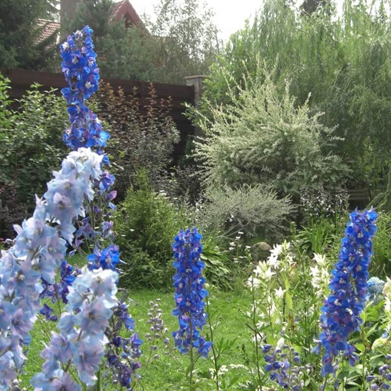Ich smukłe kwiatostany o ciekawych kolorach ożywiają rabaty i doskonale pasują do kompozycji o różnym charakterze. Te piękne rośliny lubią towarzystwo i prezentują się najlepiej w otoczeniu innych bylin. Intensywny kolor kwiatów ostróżek idealnie będzie się odcinać od tła z ciemnych krzewów - perukowca 'Royal Purple', pęcherznicy 'Diabolo' czy czerwonolistnych odmian berberysów.