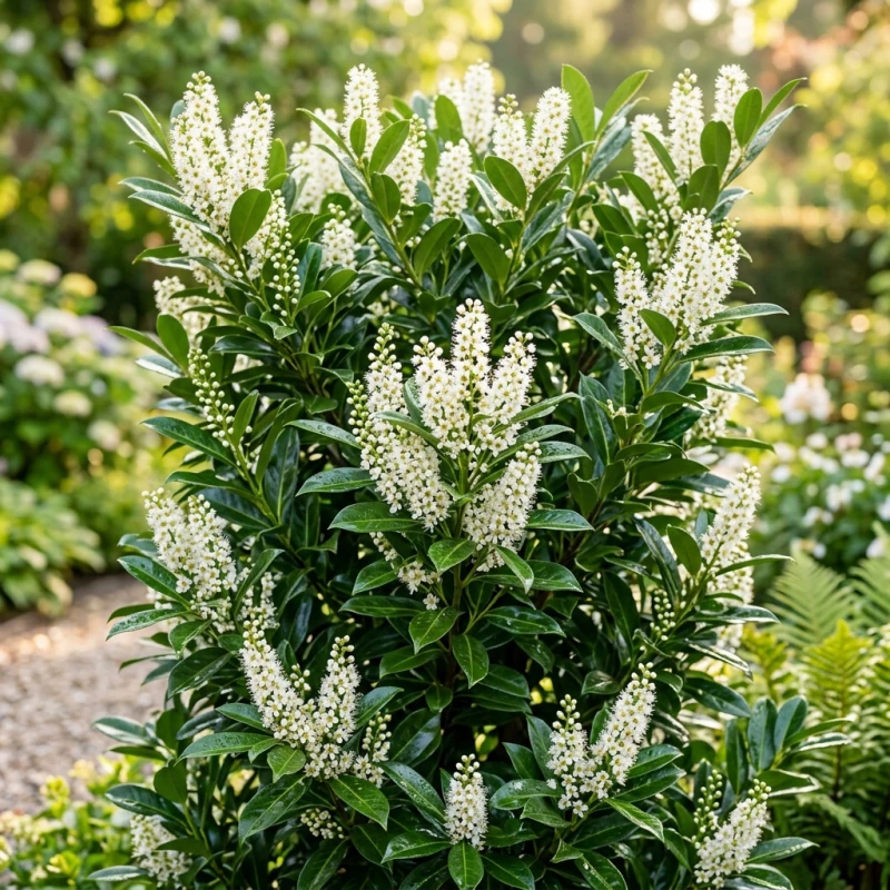 Są rośliny, które po prostu robią robotę – i to z klasą. Prunus laurocerasus 'Herbergii', czyli laurowiśnia wschodnia 'Herbergii', to jeden z tych krzewów, przy których trudno przejść obojętnie. Ciemnozielone, błyszczące, eliptyczne liście o długości 10–12 cm wyglądają tak, jakby ktoś je właśnie wypolerował – przez cały rok, bo to roślina zimozielona! Krzew rośnie dość gęsto i wznioście, osiągając od 1 do 2 metrów wysokości, co czyni go idealnym kandydatem na elegancki żywopłot, szpaler lub solową gwiazdę tarasu.